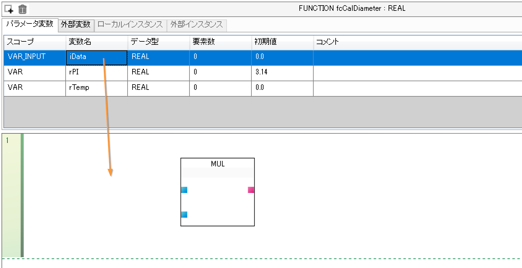 次はファンクションのパラメータと変数を割り付けましょう。
