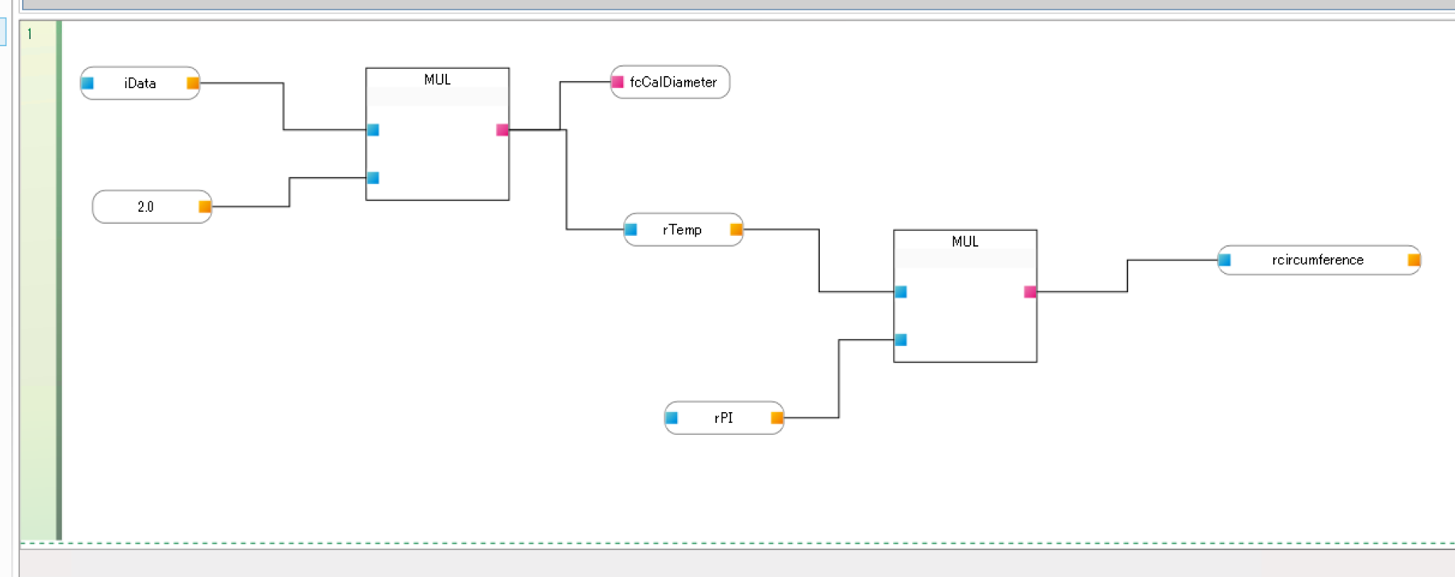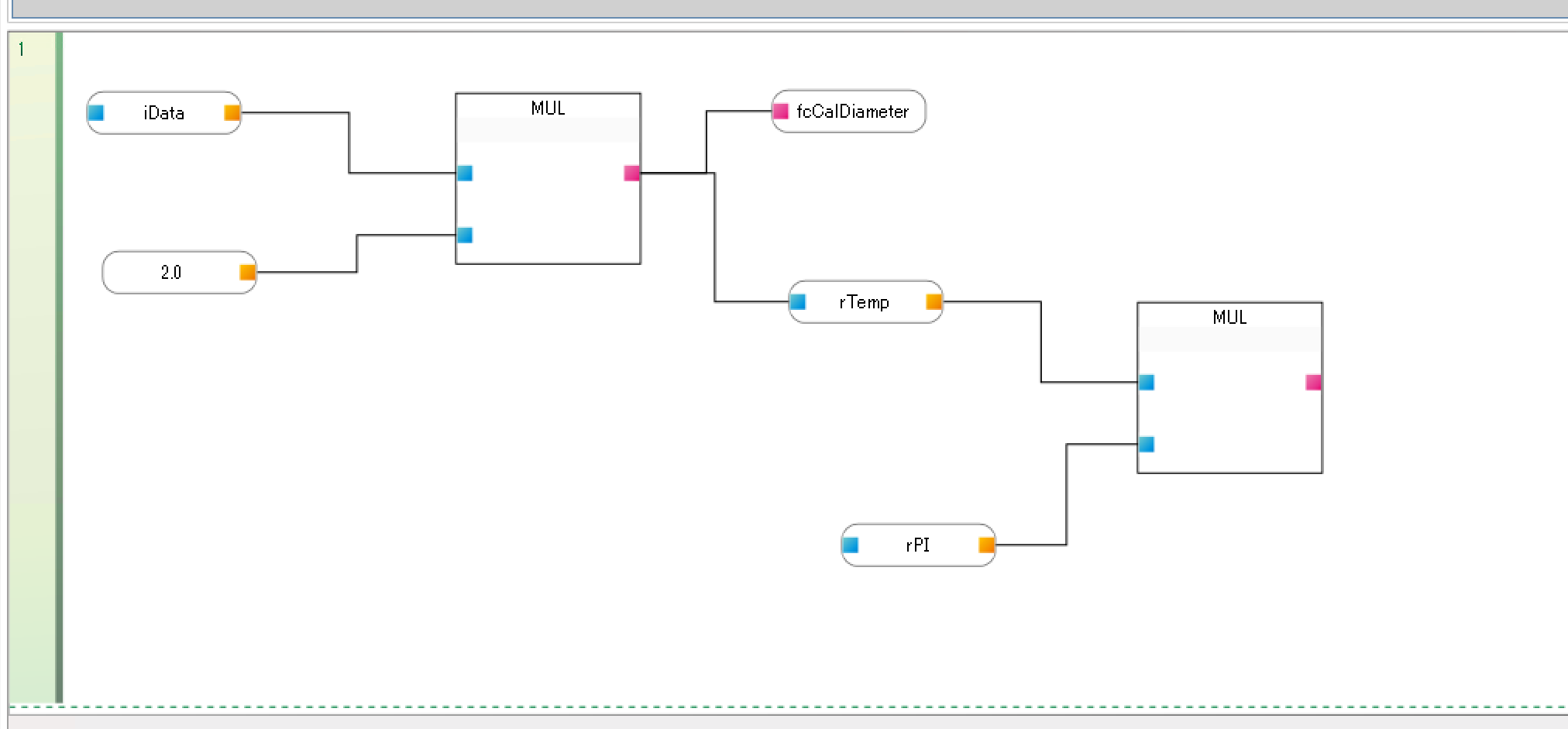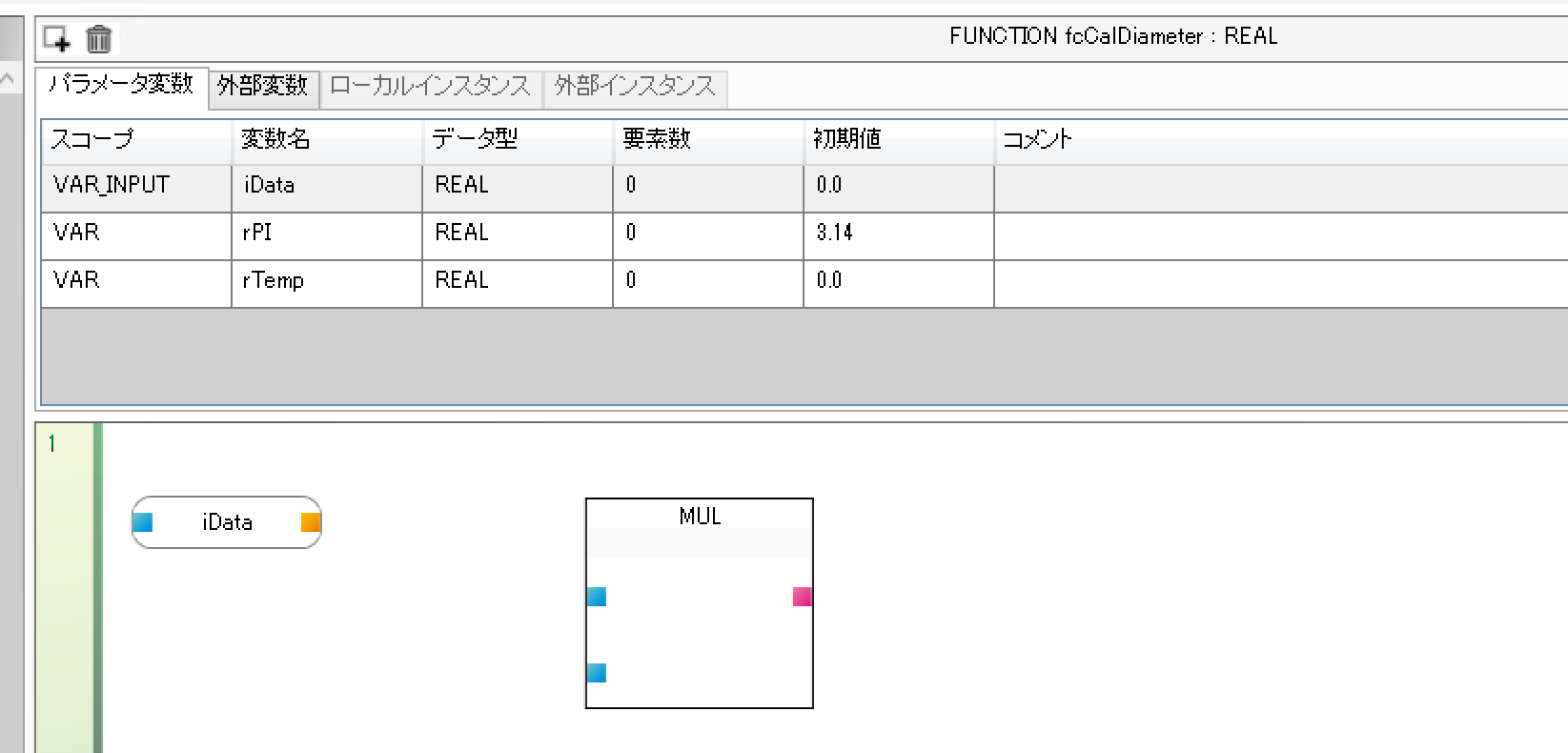 iData(このファンクションの入力パラメータ)をMULの入力端子と接続します。