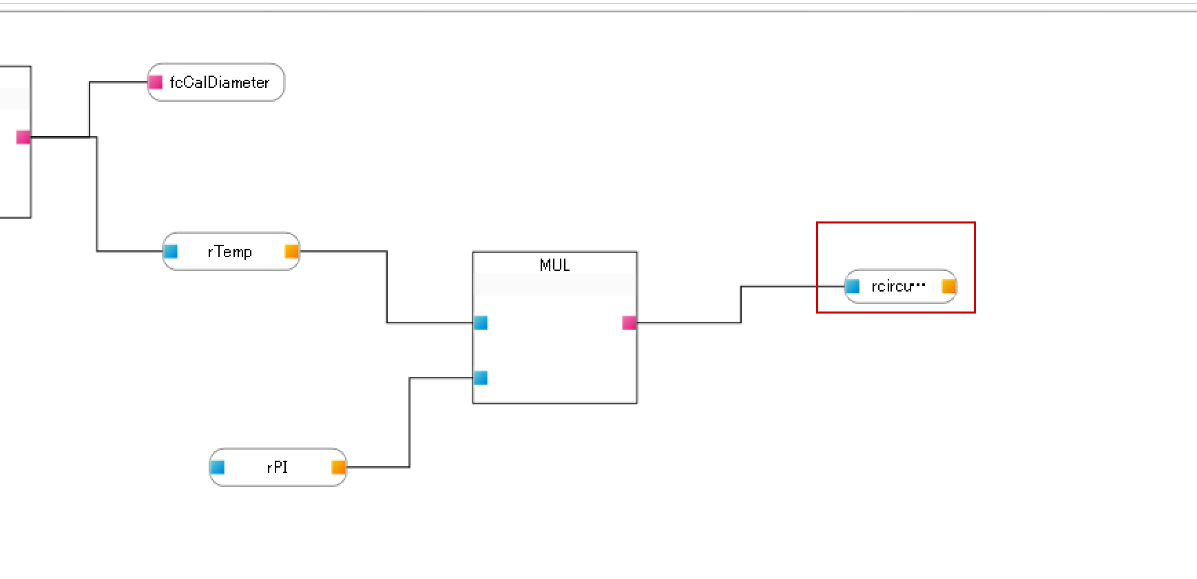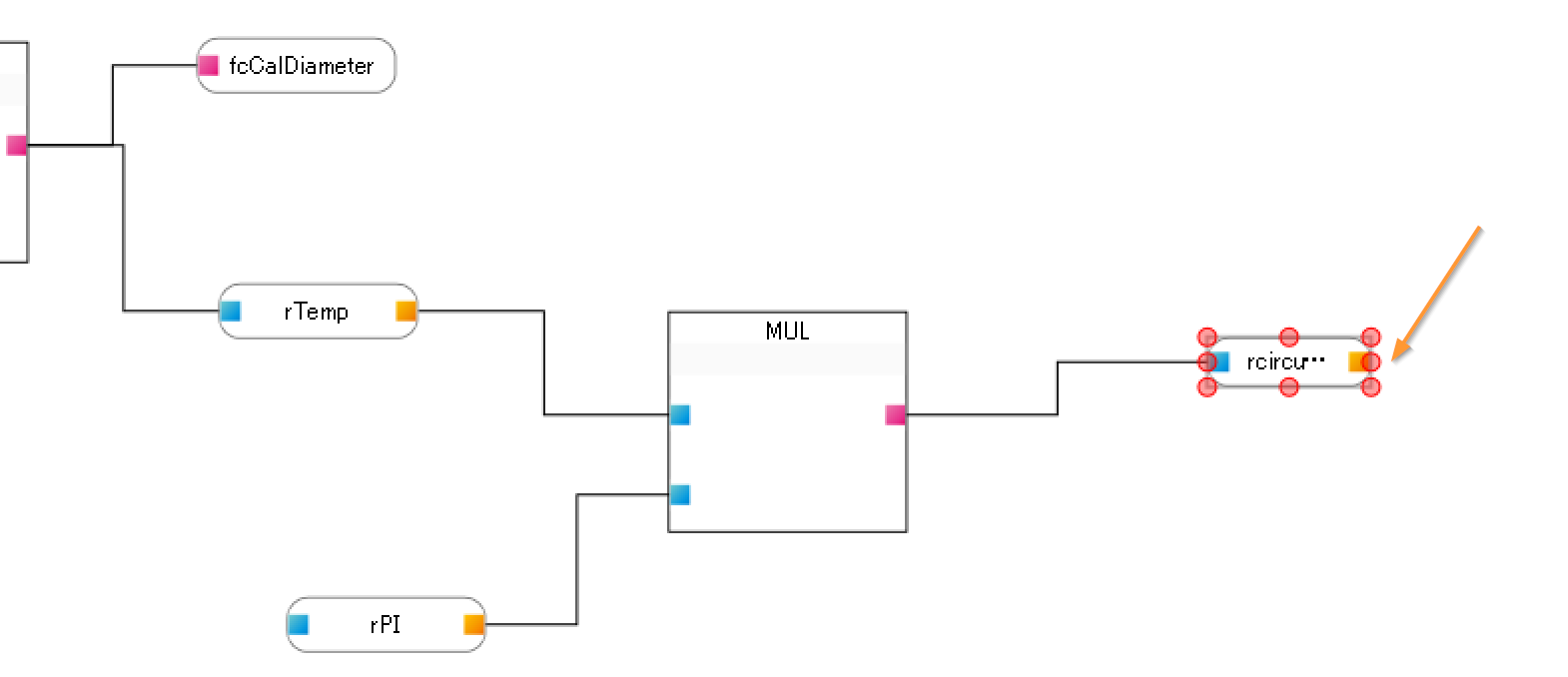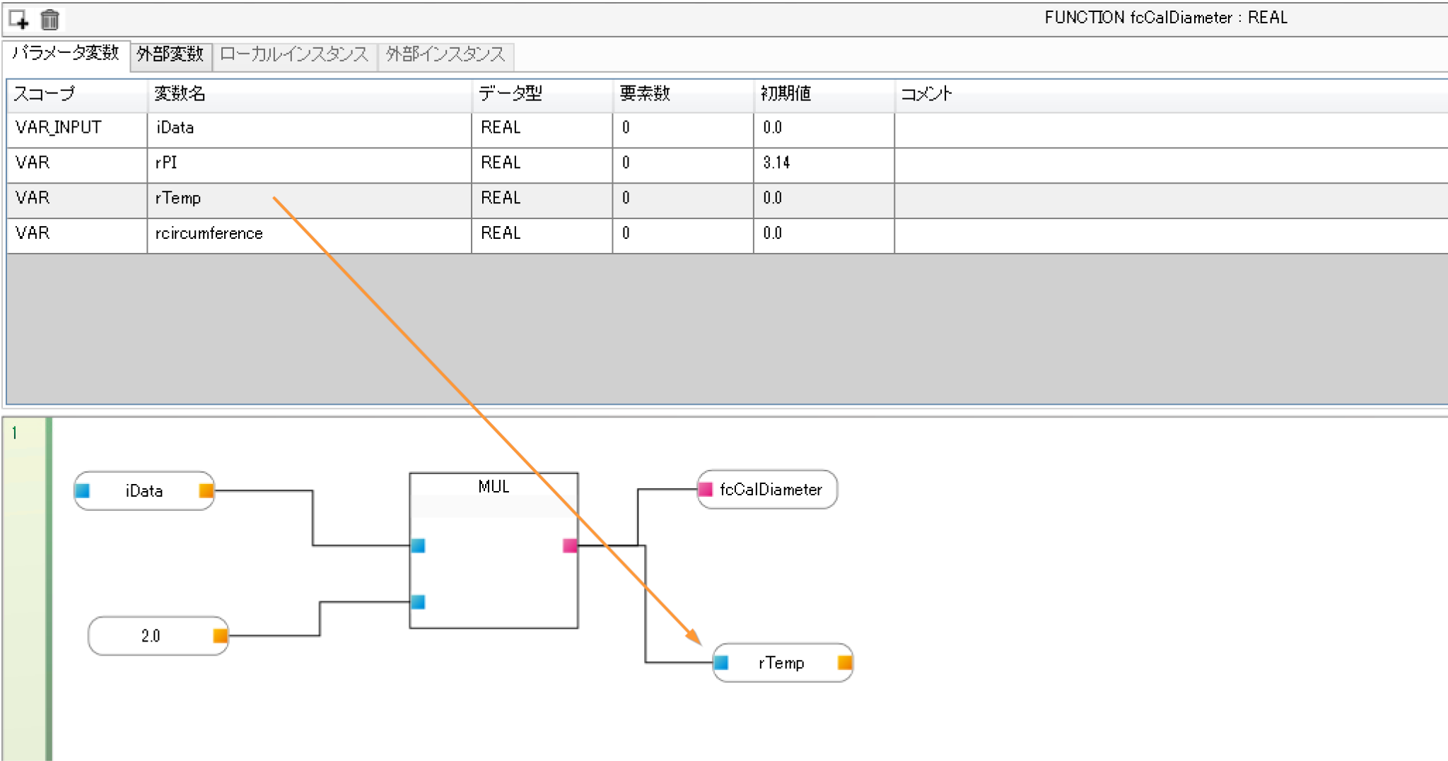下図のようにfcCalDiameterをデータターミナル→戻り値から追加します。