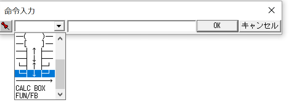 命令入力POPUPが表示され、Drop-ListからFUN/FBを選択します。