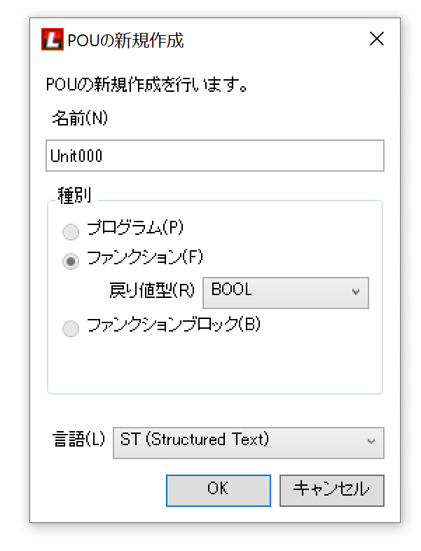 ユーザ定義ファンクションを右クリック→新規作成→POUします。