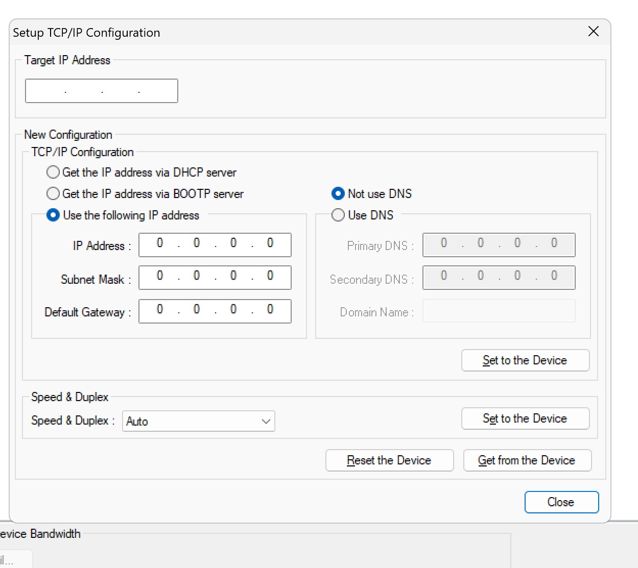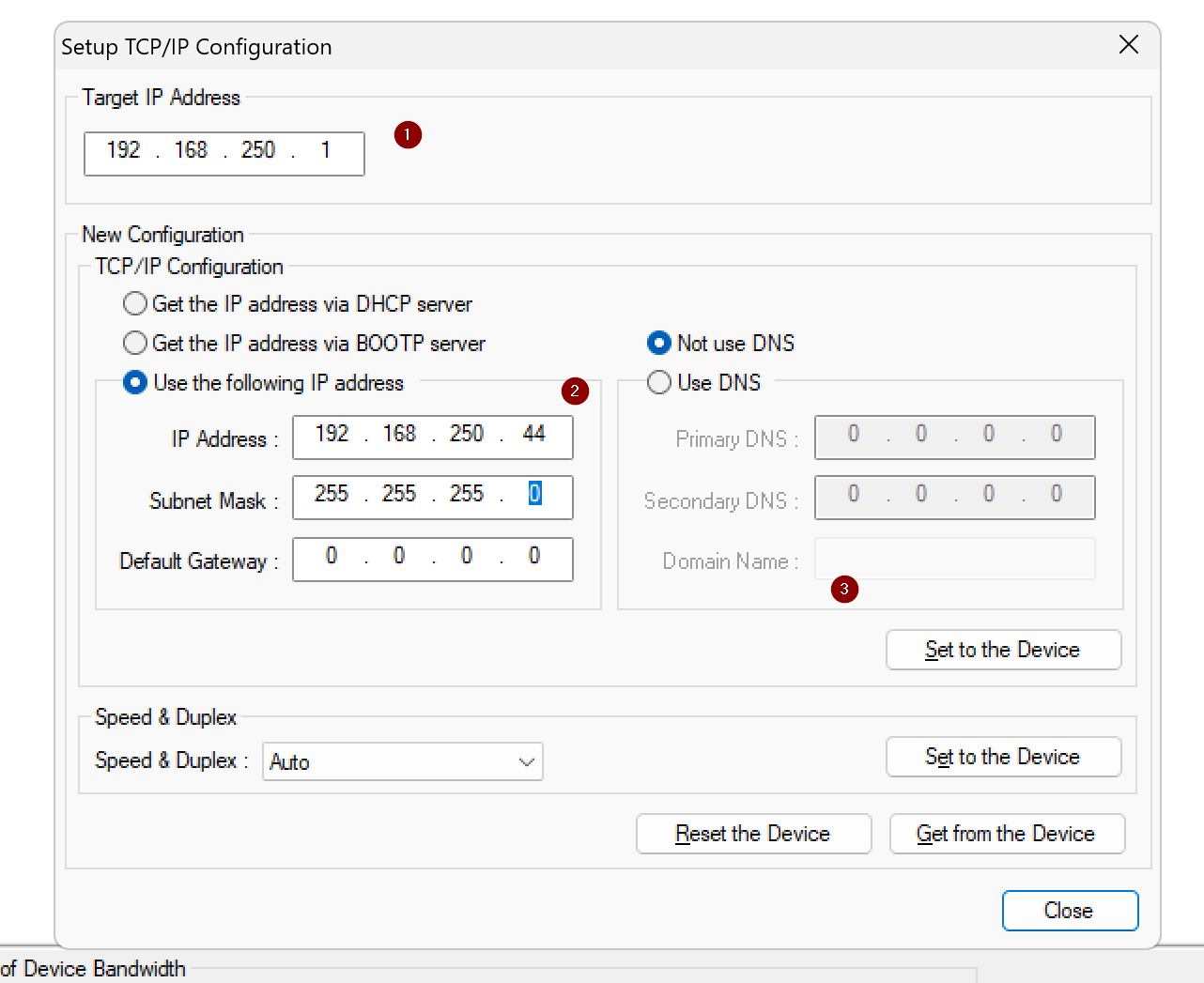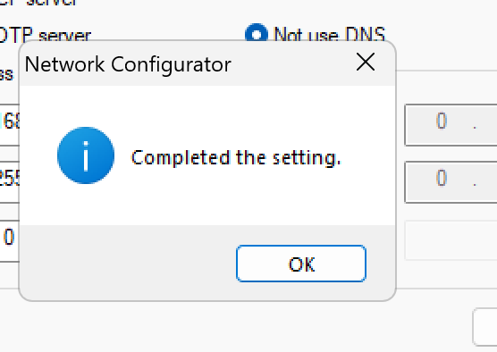 Target IPに現在接続してるオムロンEIC202のIPアドレスに設定し→New Configurationで新しいネットワーク設定を入力し、最後はSet to the Deviceで設定をEIC202に書き込みます。