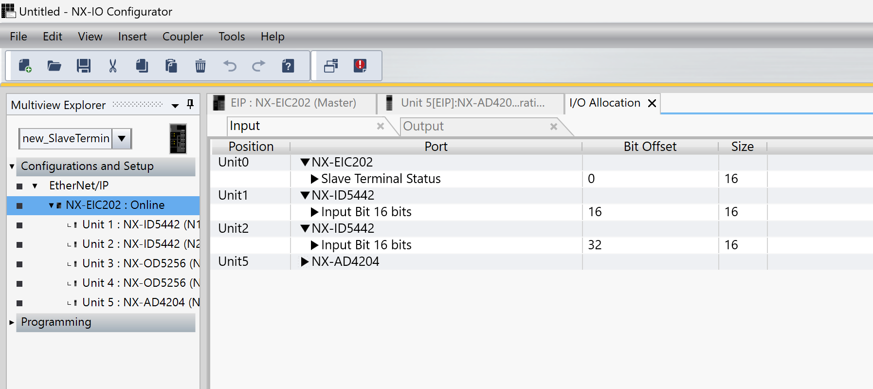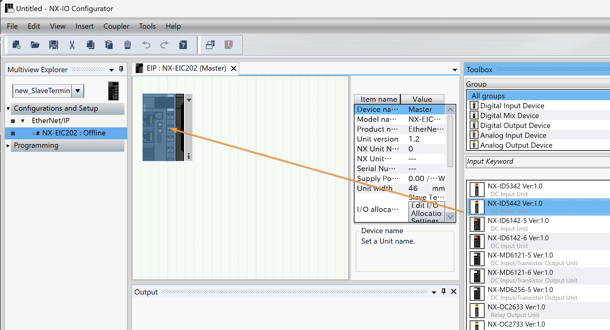 次はNX IO Configuratorを起動し、EIC202にインストールされているモジュールを設定します。