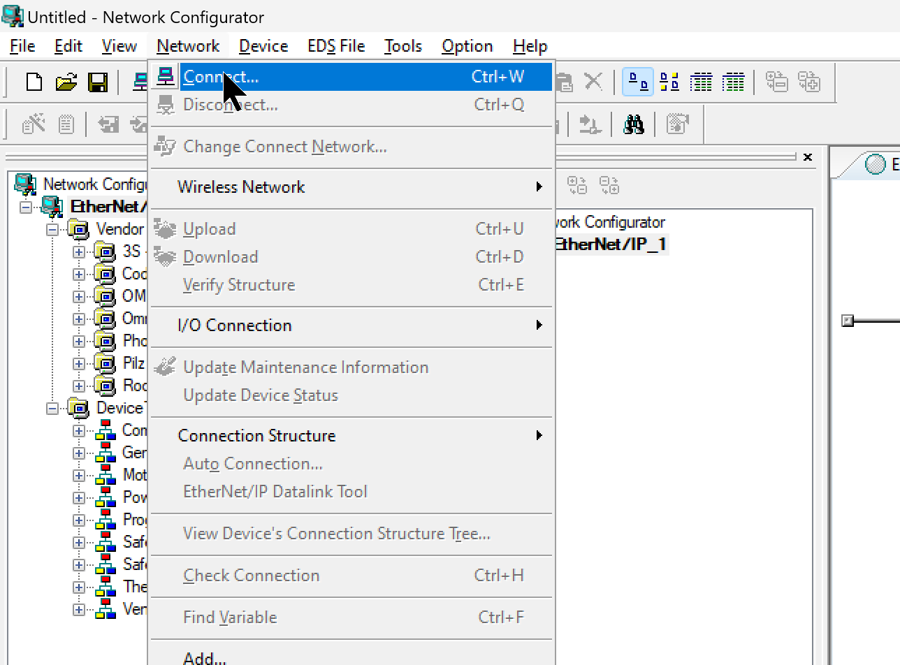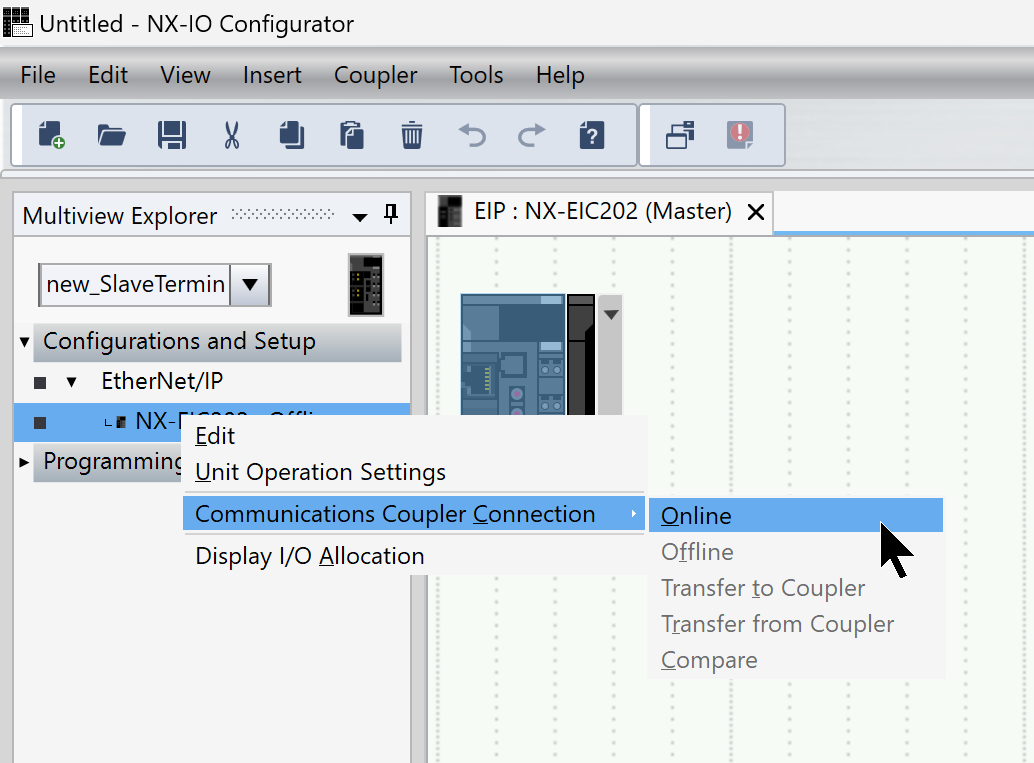 次はEIC202右クリック→Communication Coupler Connection→Onlineします。