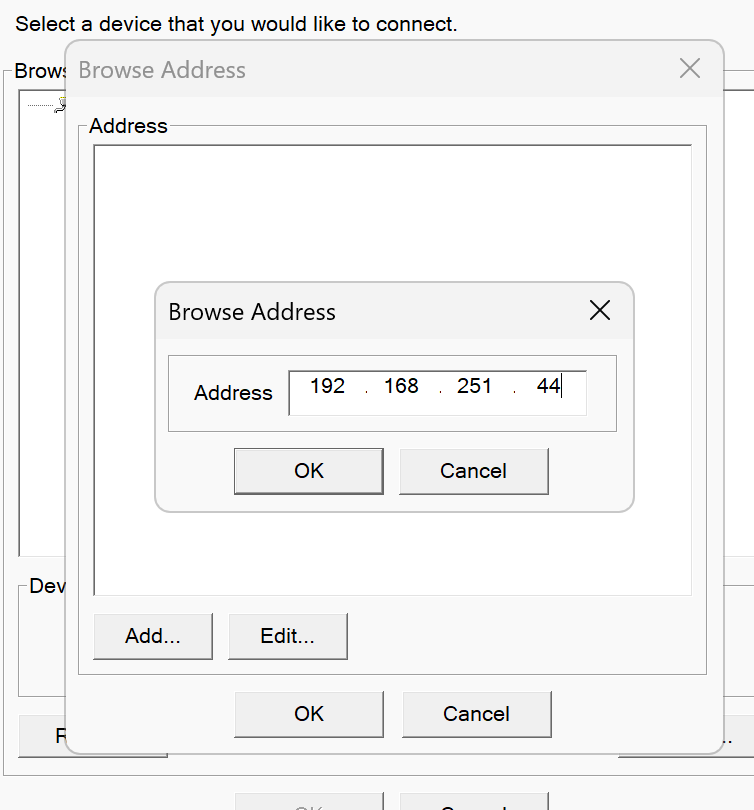 EIC202のIPアドレスを入力し、Okで進みます。