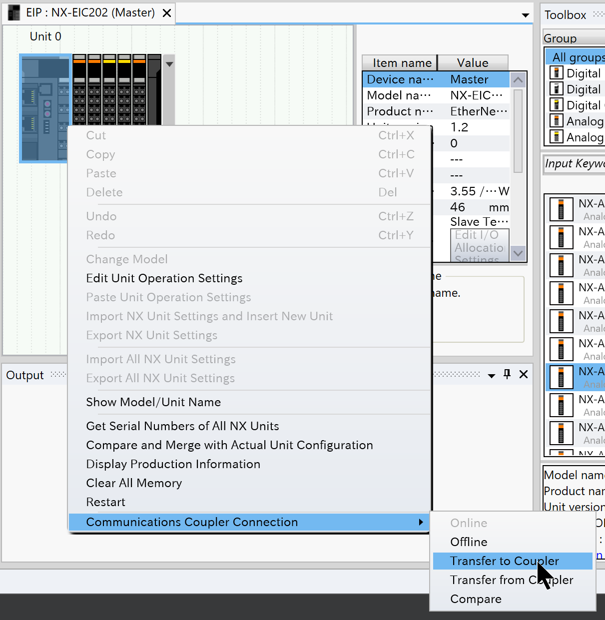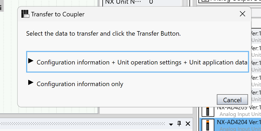次はCommunication Coupler Connection→Transfer to Couplerでカプラー設定をEIC202にDownloadしましょう。