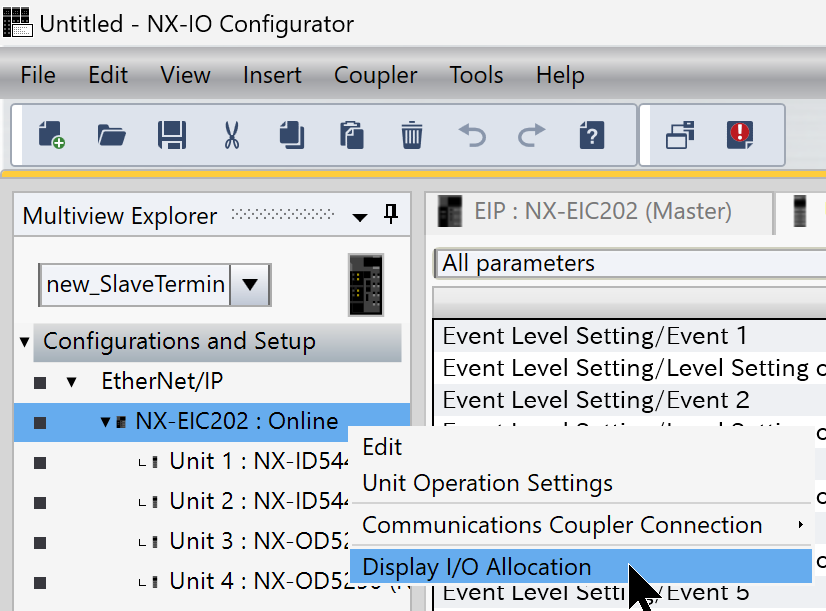 最後はNX-EIC202→右クリック→Display I/O Allocationをクリックします。