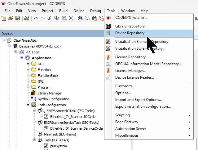 Tools→Device Repositoryをクリックします。