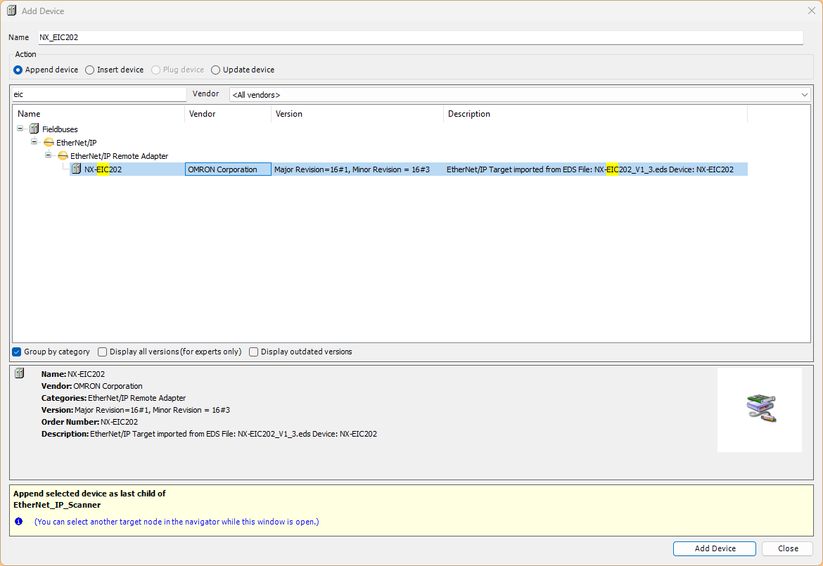 同様に、下記のLinkからオムロンのEIC202のEDS FILEをDownloadしてください。