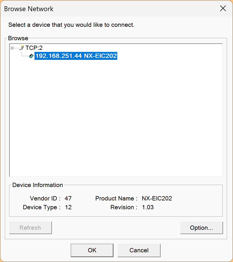 NX-EIC202を選び→Okで進みます。