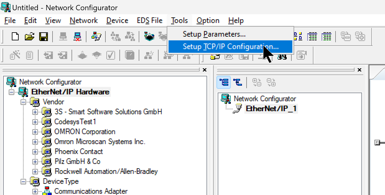 今度はEIC202のIPアドレスを設定するために、Tools→Setup TCP/IP Configurationをクリックします。
