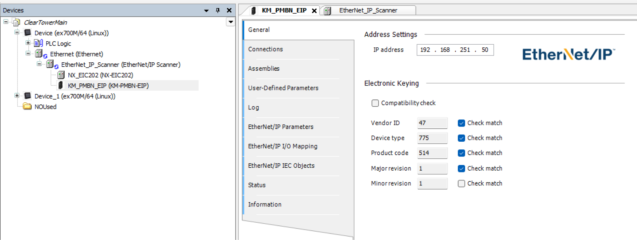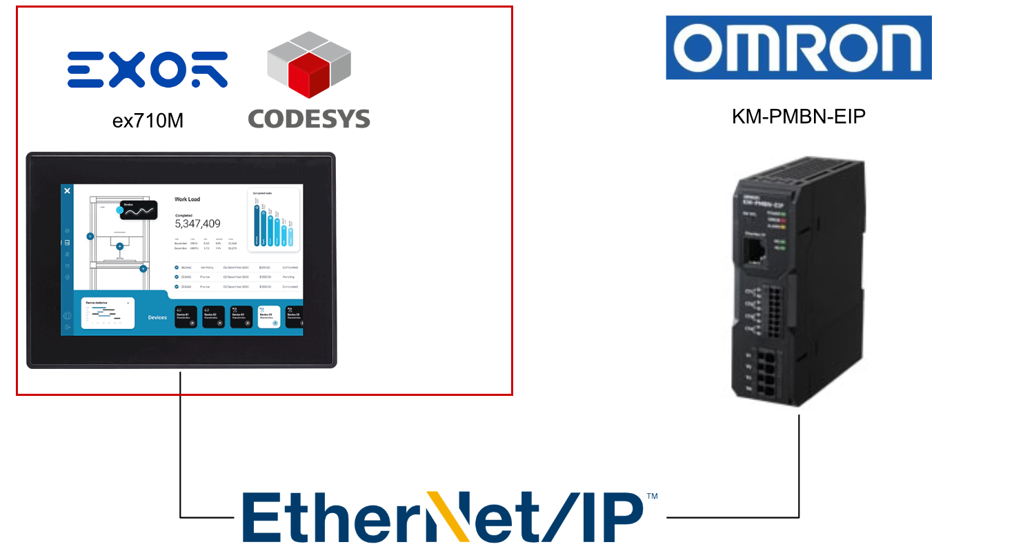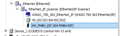 Done!Codesys RuntimeとオムロンのKM-PMBN-EIPがEthernet/IP接続できました。