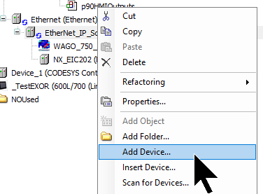 最後は今回記事で使用するオムロンのKM-PMBN-EIPを追加するために、Ethernet/IP Scanner→右クリック→Add Deviceします。