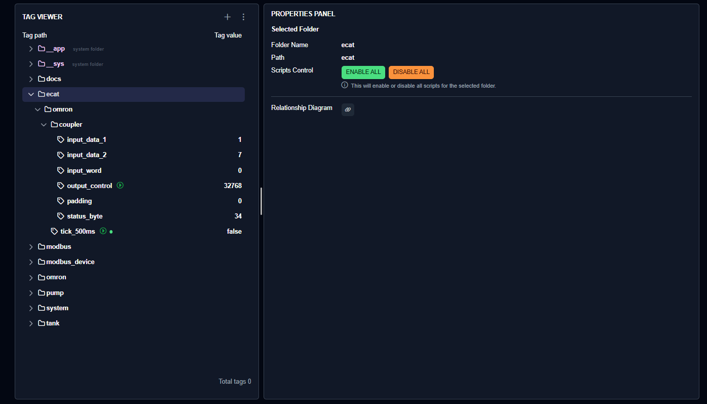 ecatを開くと現在稼働してるEtherCAT Slaveの状態を確認やIOを確認できます。
