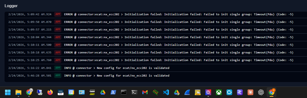 手動でEtherCATマスターのTimeoutなどの設定を変更できます。