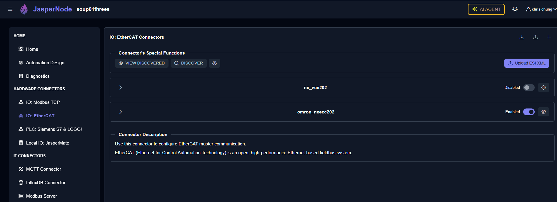 JasperNodeのAI AGENTを使用しEtherCATネットワークを構築しましょう。