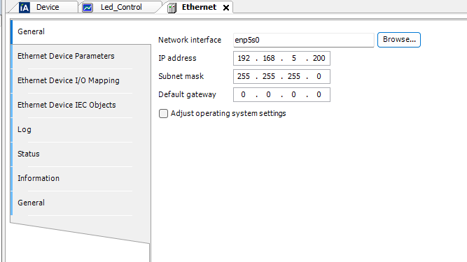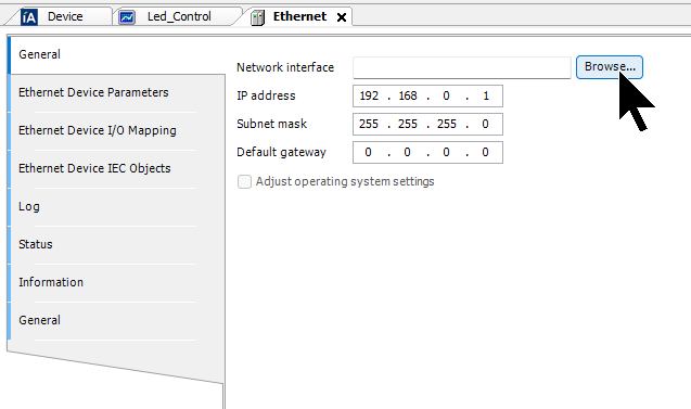先のステップで追加されたEthernet Driverをクリックし、General→Network Interfaceの隣にあるBrowseボタンをクリックします。