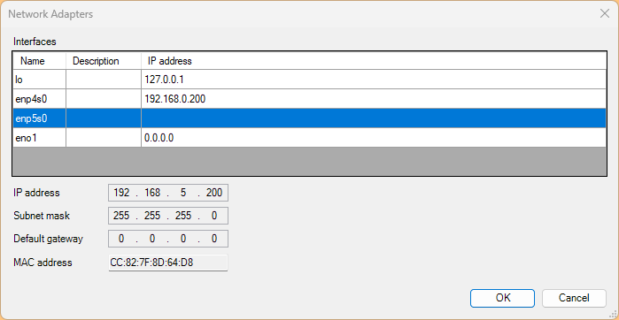 Profinet IO Controllerとして使用するEthernetインタフェースを選択しましょう。