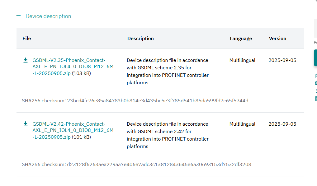 下記のLINKからAXL E PN IOL4/0 DIO8 M12 6M-LのGDSML FILEをDownloadします。