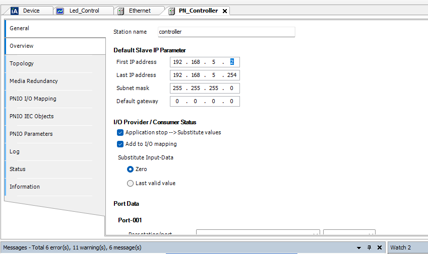 先程追加したProfient IO Controllerをクリックし、Station NameとスレーブIPアドレス範囲を設定しましょう。