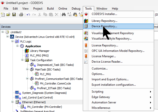Tools→Devices Repositoryをクリックします。