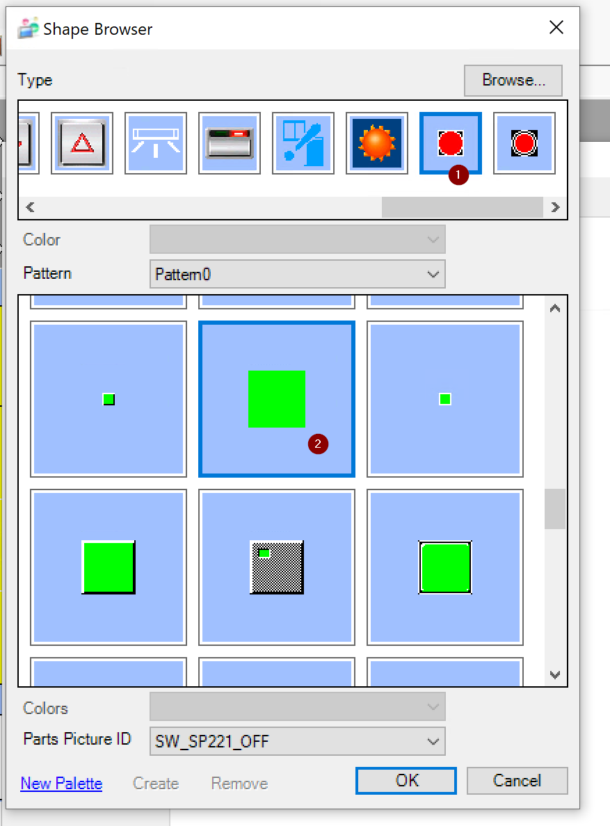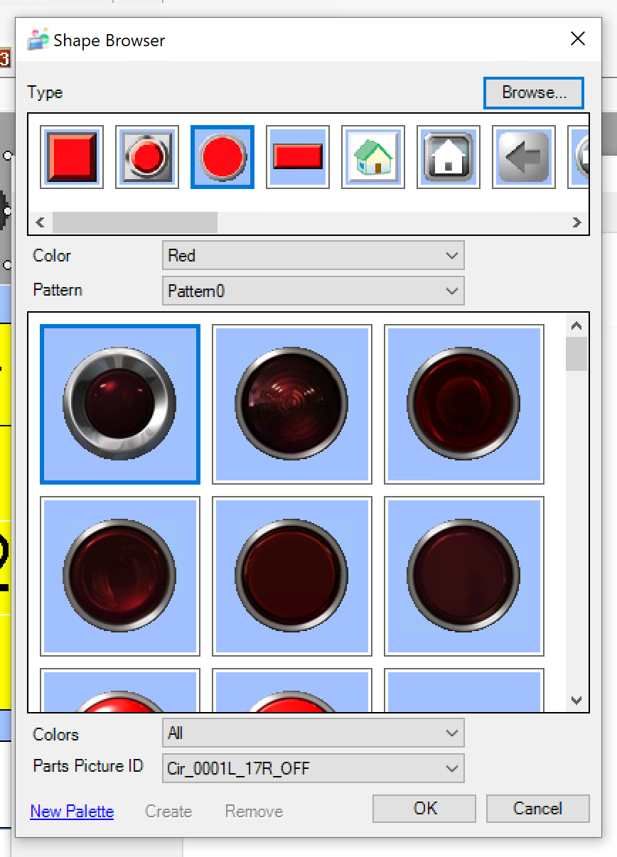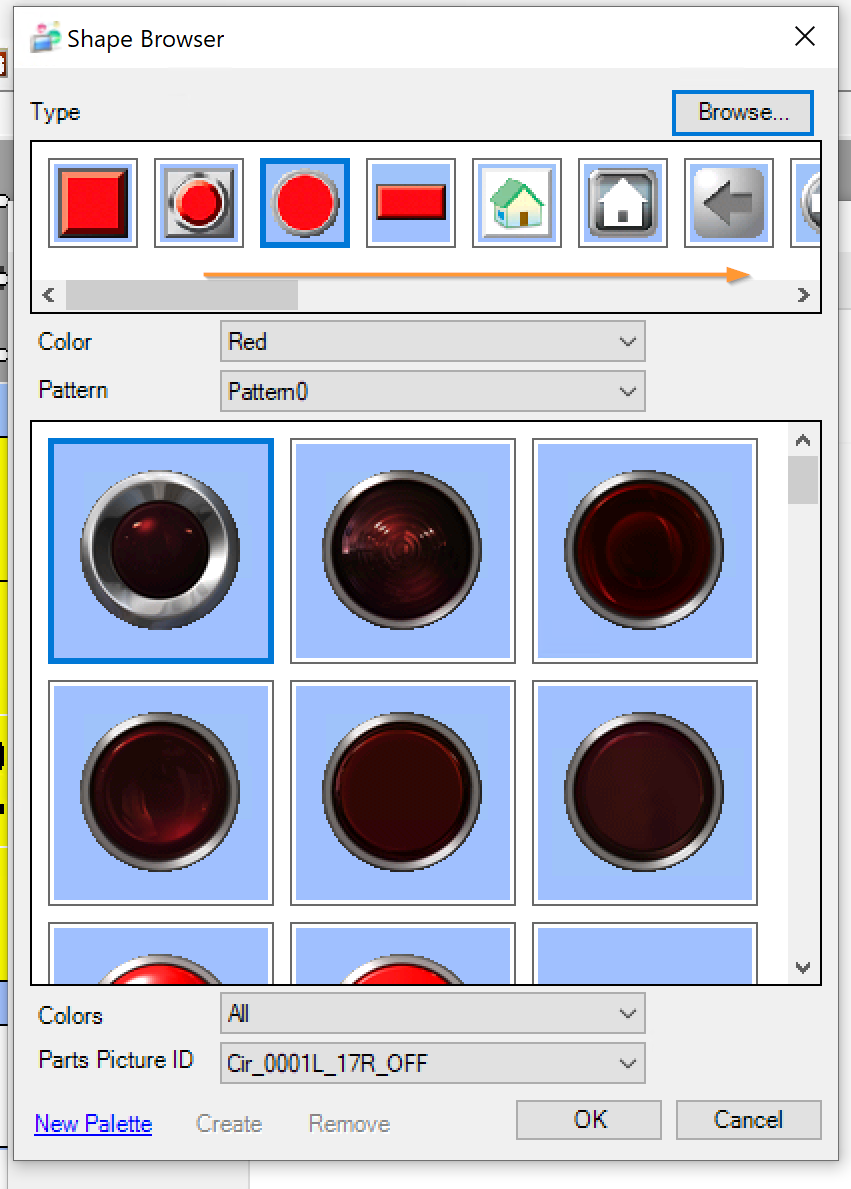 HMIでよくある薄い枠と単色の部品を使用したいので、Typeを一番右にScrollします。
