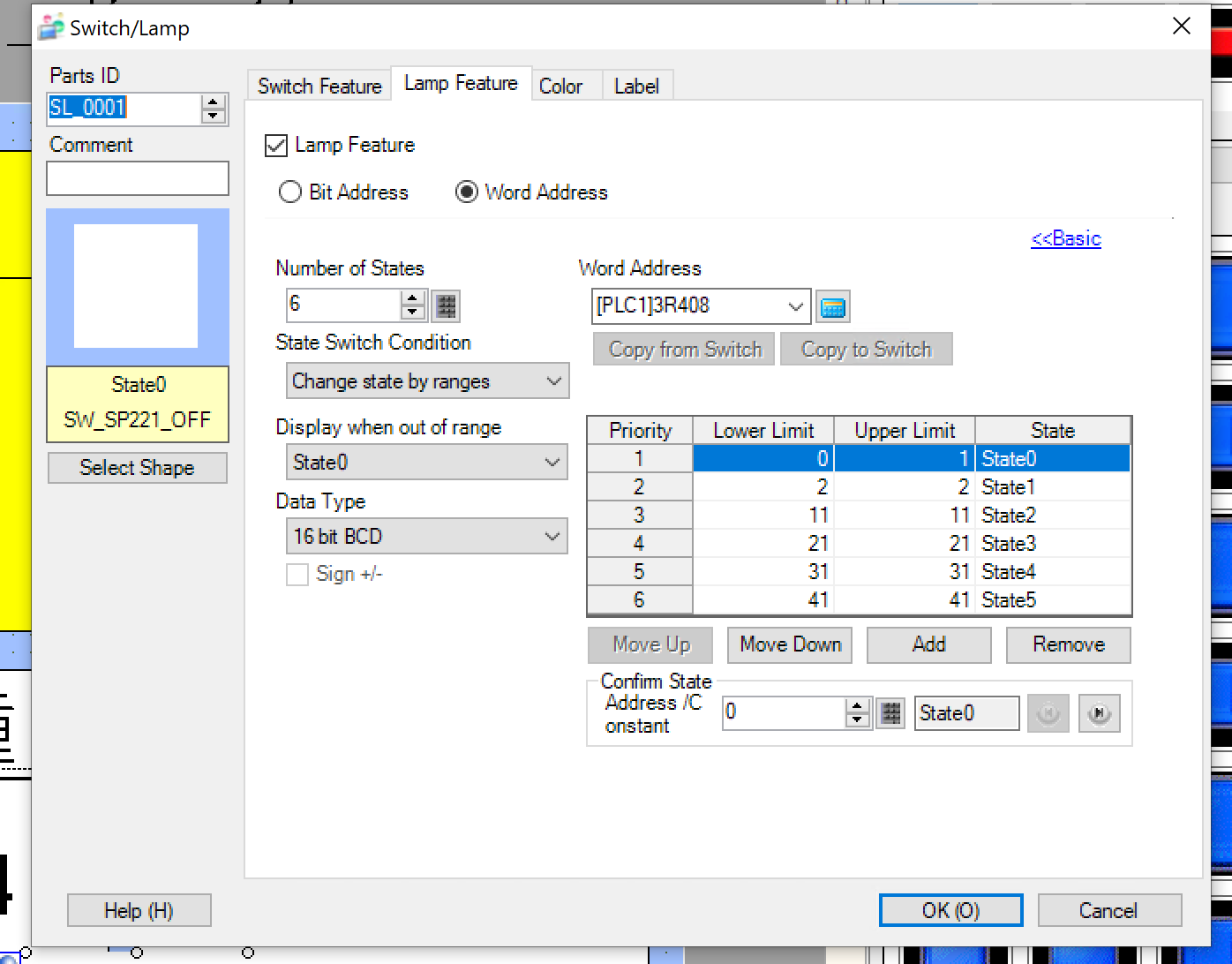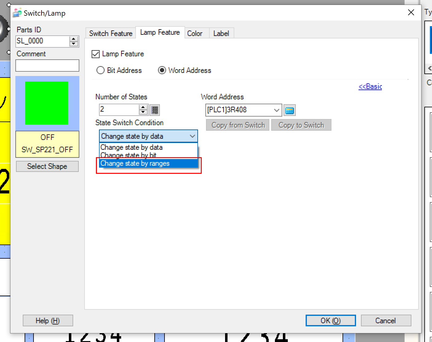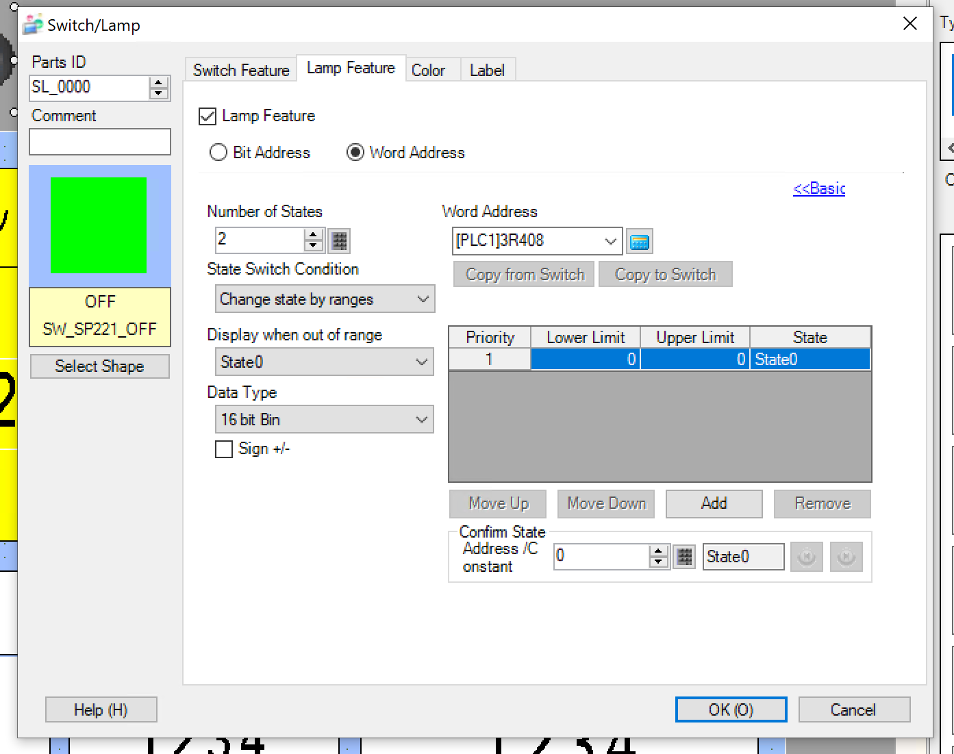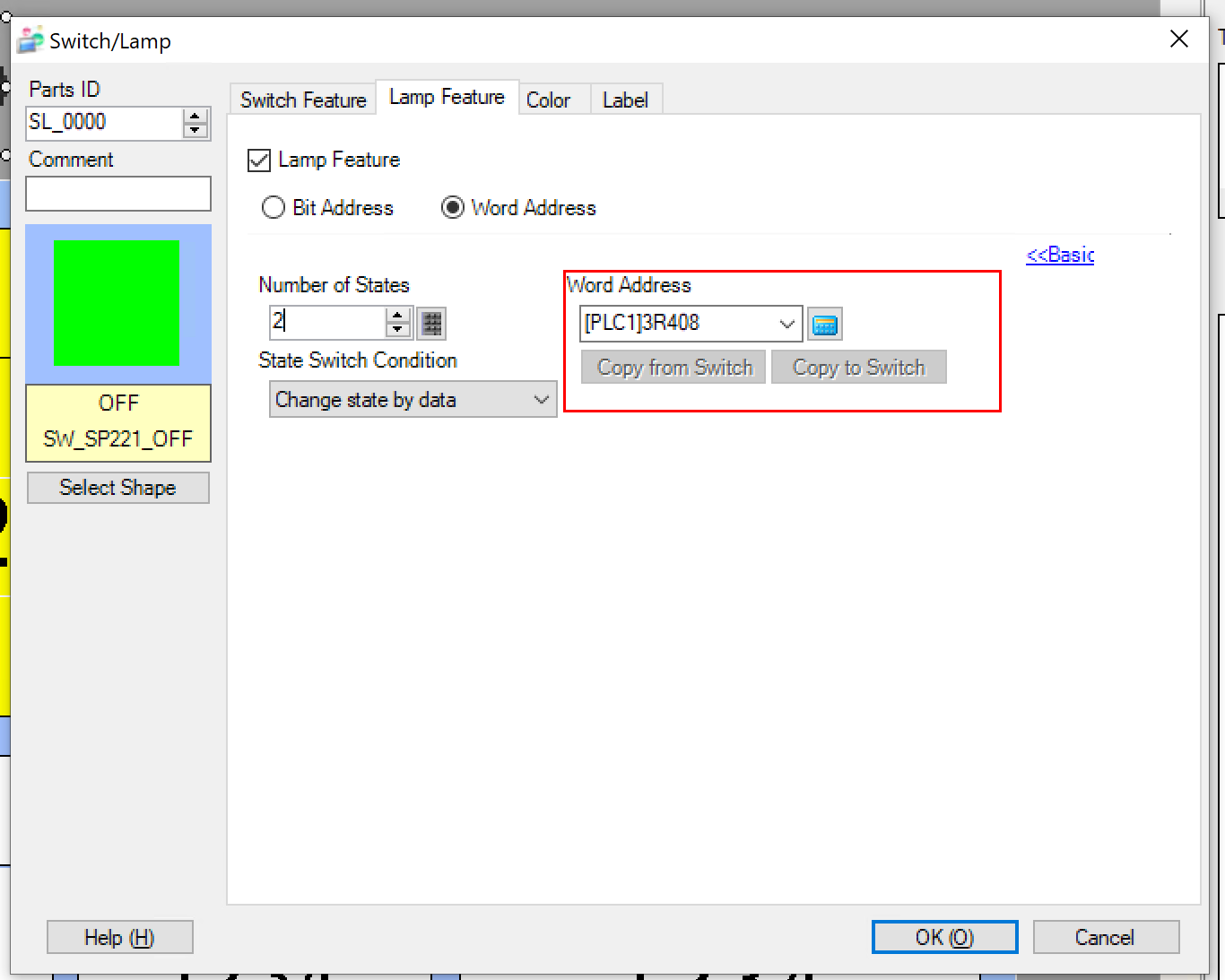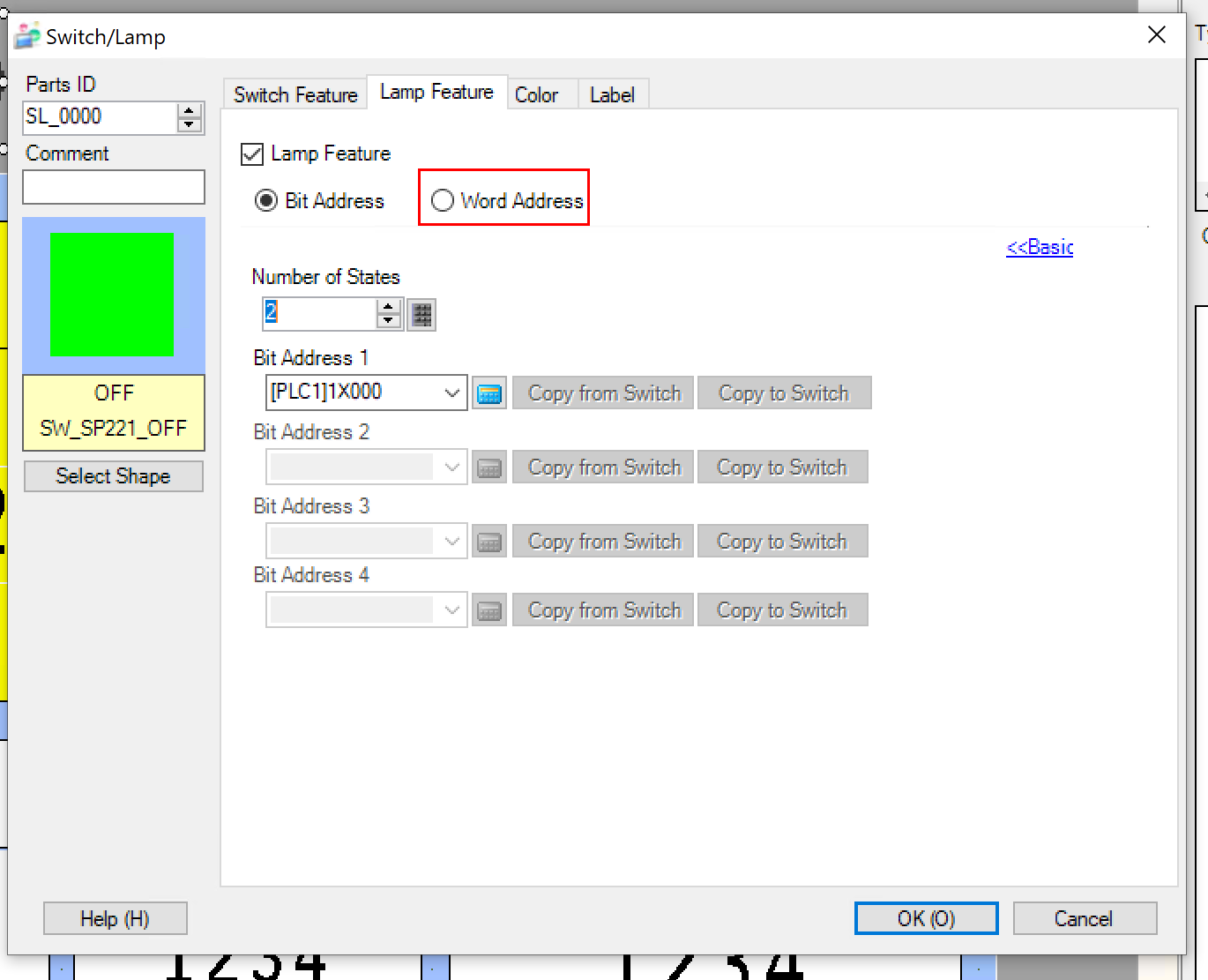 Word Addressを選択します。それにより、Lampの変換はON/OFFだけではなく、複数のPatternを設定できます(たとえば1=赤、2=青)。