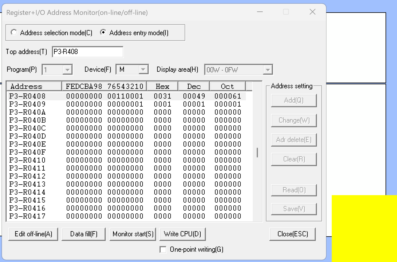 そしてP3-R408がHEX31のとき、LAMPの色が黄色になりました。