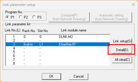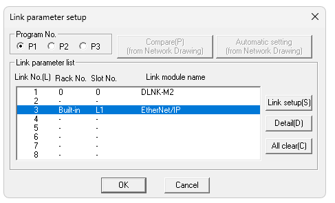 PCWin2からLink Parameter Setup画面を開きます。