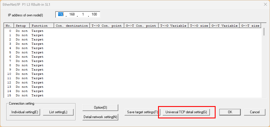 次はUniversal TCP Detail settingをクリックします。
