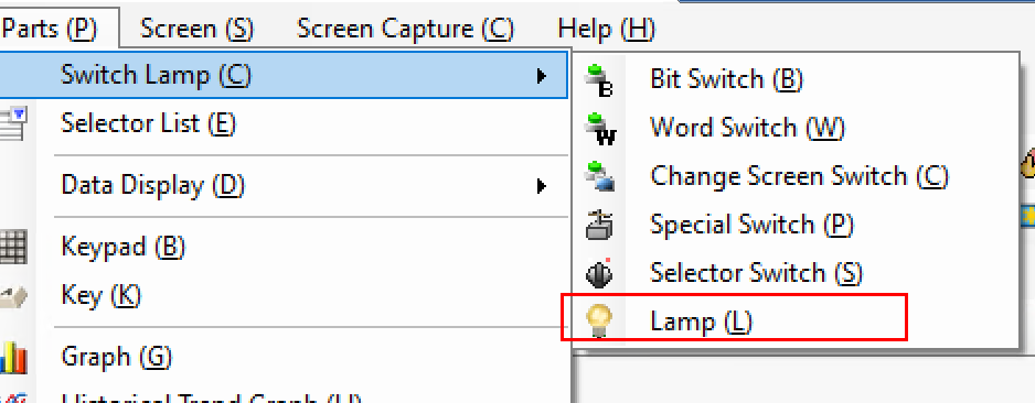 Parts→Switch Lamp→Lampを追加します。