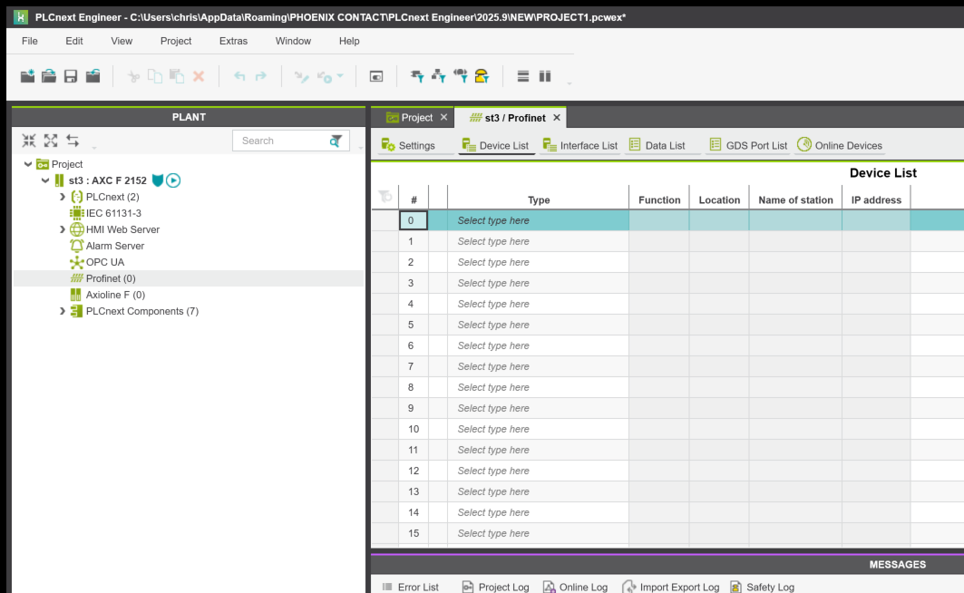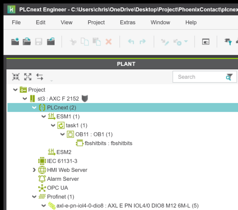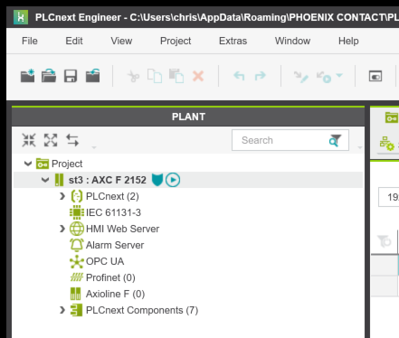 最初にPLCNEXT AXCF2152側から構築します。