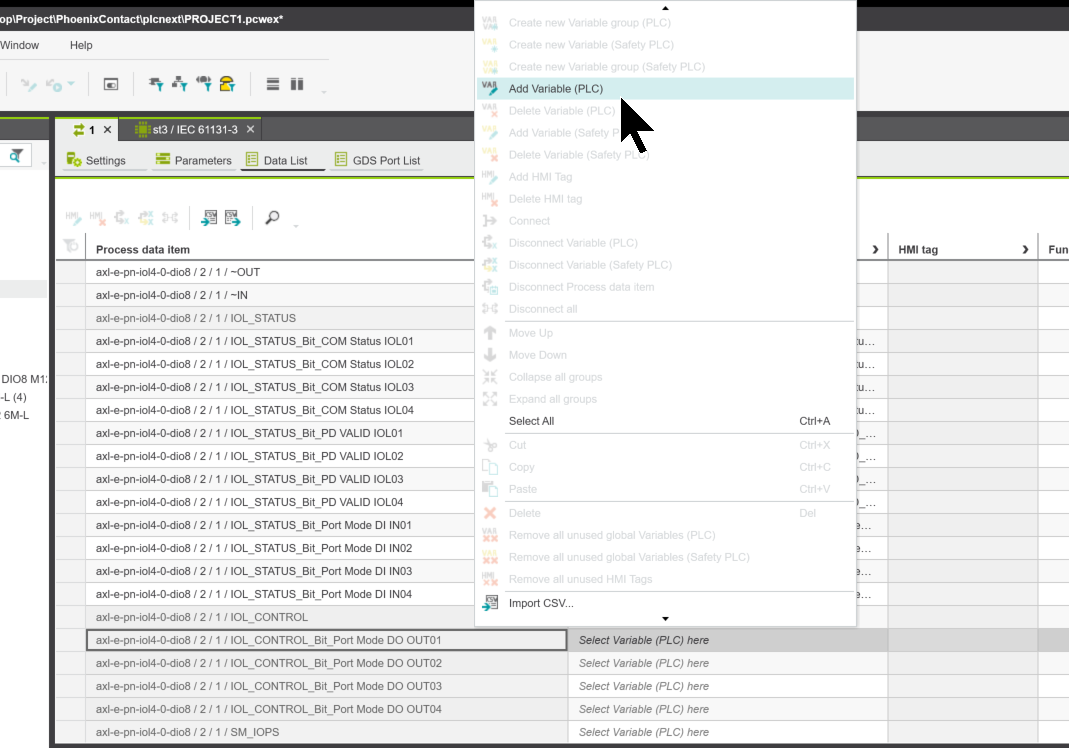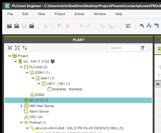 次はplc next engineerからGlobal変数を宣言するためにProject→IEC 61131-3をクリックします。