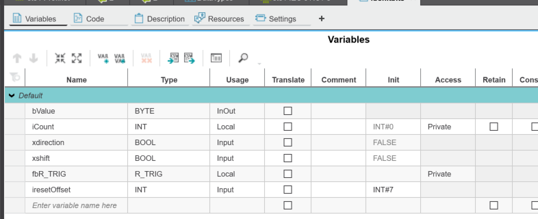 こちらのFBはxshiftの立ち上がりエッジで、ビットを左または右にシフトしながら積み上げるプログラムです。