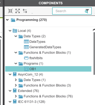 次はMAINプログラムを作成するために、PLC ENGINEER→右側→COMPONENTS→Programs→新しいプログラムを作成しましょう。