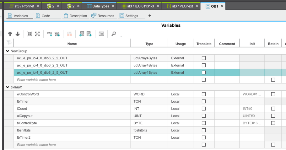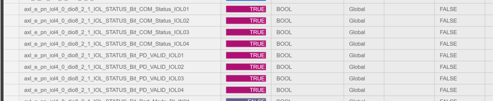 2つの異なる周期でビットシフトを行い、PROFINETデバイス(Axioline E I/O-Linkモジュール)へ出力するプログラムになります。