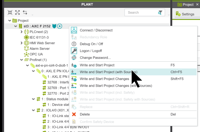 次はプログラムをRuntimeに実装するように設定しましょう。ここでPLCnextをクリックします。