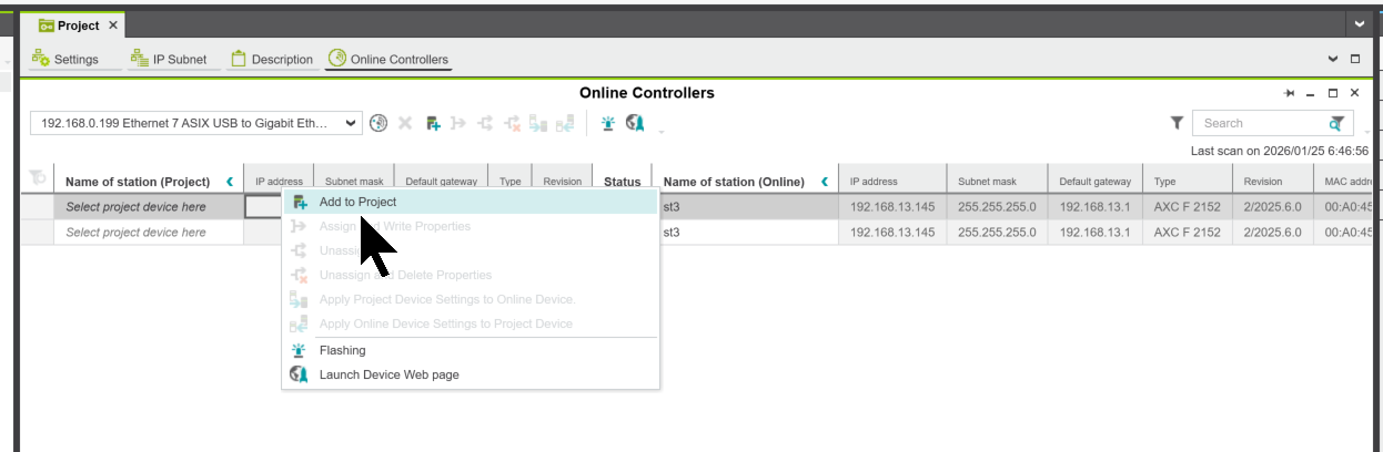 PLCNEXTコントローラをスキャン