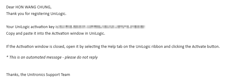 先ほど記入したメールアドレスからActivation Key届くはずです。