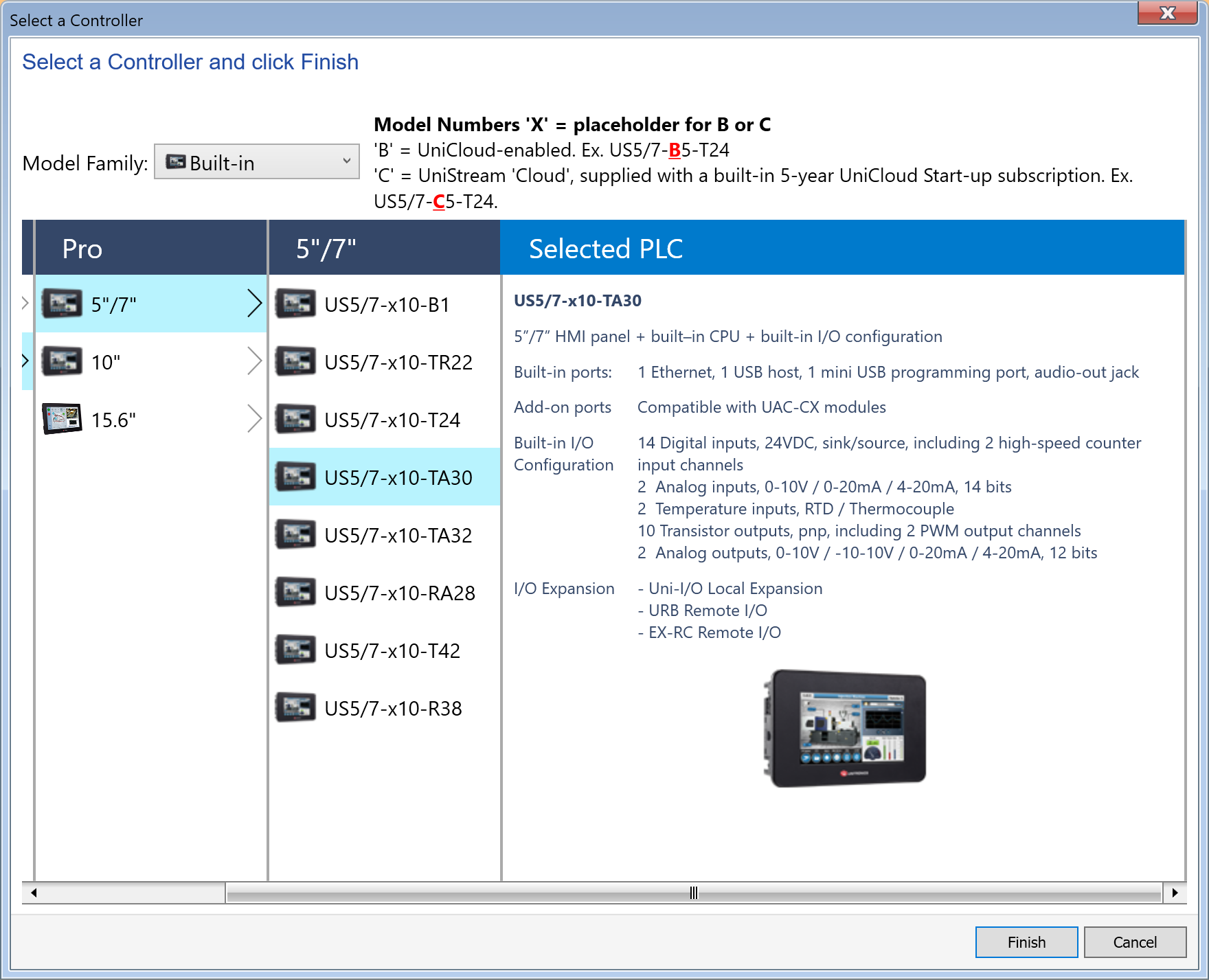 US5-C10-TA30は受賞歴を持つ高性能なUniStream PLCの製品群であり、3つのシリーズで提供されています。