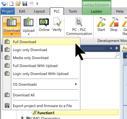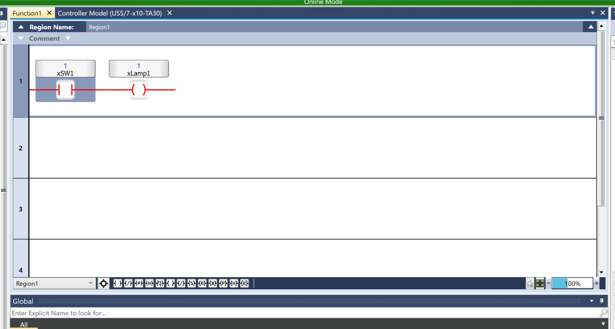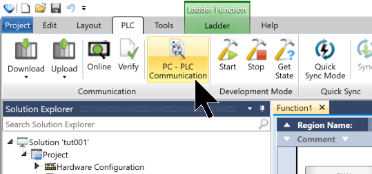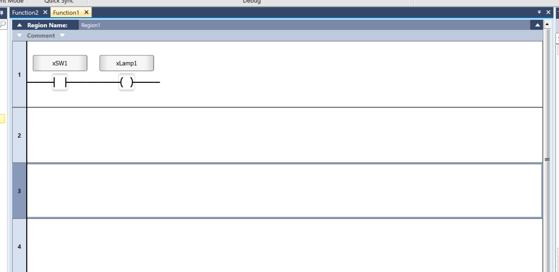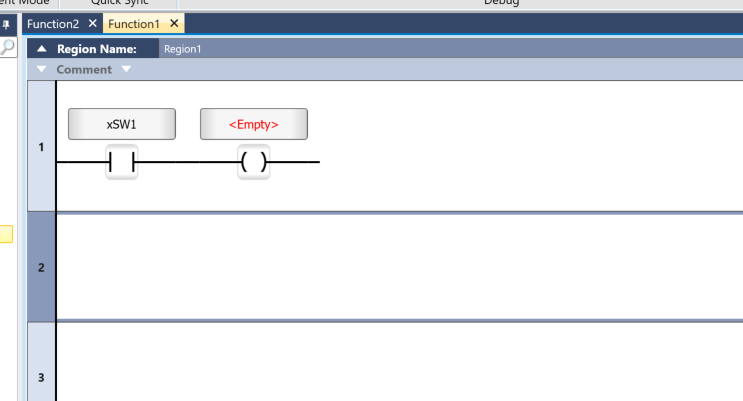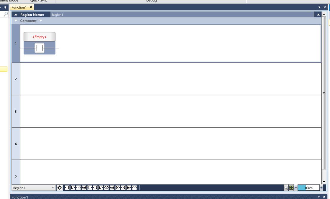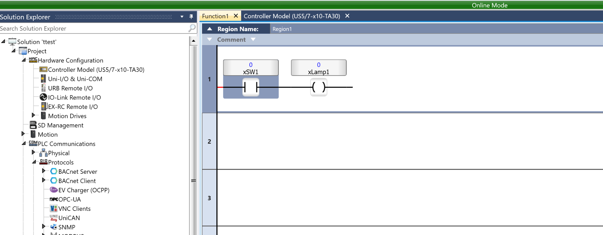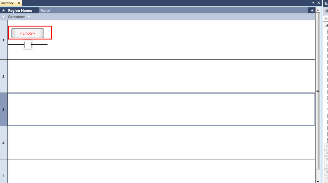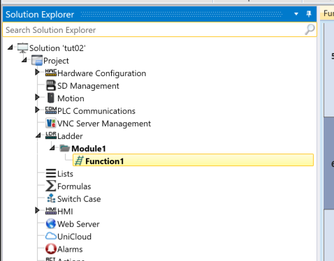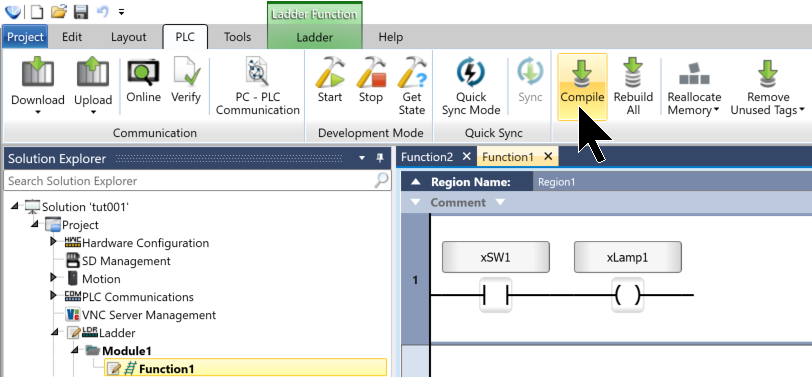 Done!プロジェクトが作成され、Ladder→Module1→Function1を開き、ラダープログラムを作成しましょう。