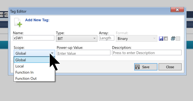 また、接点となりにある鉛筆アイコンをクリックし、Tag Editorを開き変数を宣言または修正できます。
