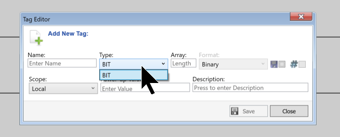 Typeは変数のデータタイプを設定でき、接点なのでBITのみになります。