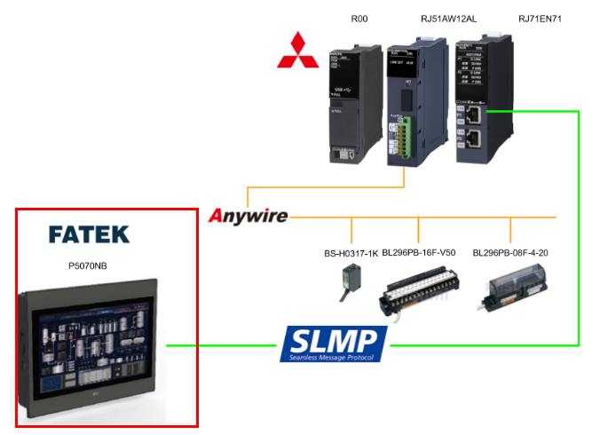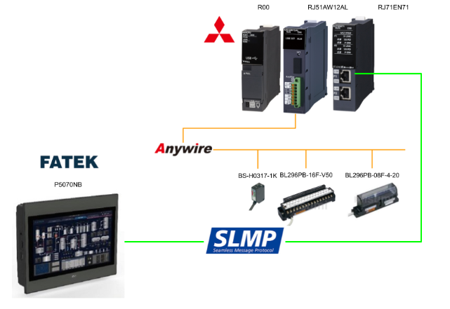 こちらは新しいシリーズでFATEKのP5070NB HMIを使用し様々な記事を展開していきます。第3話では三菱電機のRJ71EN71と通信し、簡単な画面を作成します。今回の記事では下記の部品を紹介します: