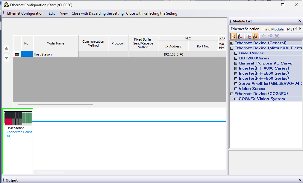 DeviceのDrop-Listから先程追加した三菱電機接続に変更します。