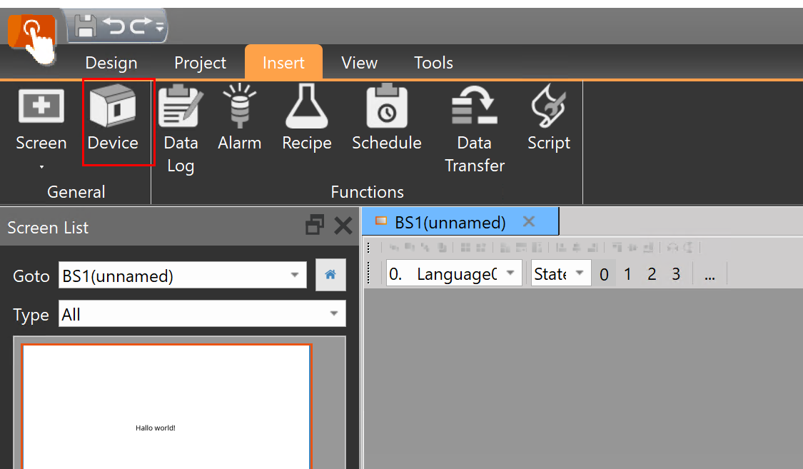 FV Designerを起動し、Insert→Deviceをクリックします。