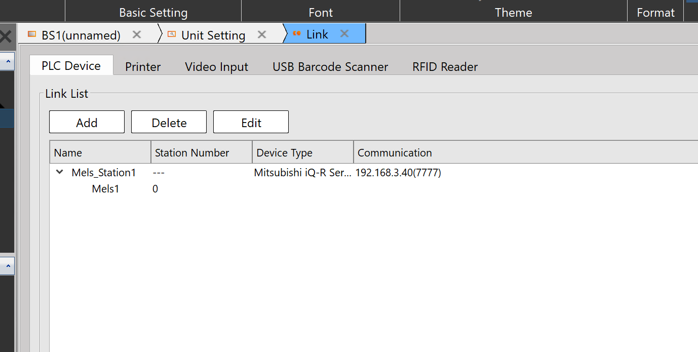 OKをクリックすると、PLC Device Tabが表示され、先程設定した接続が表示されました。