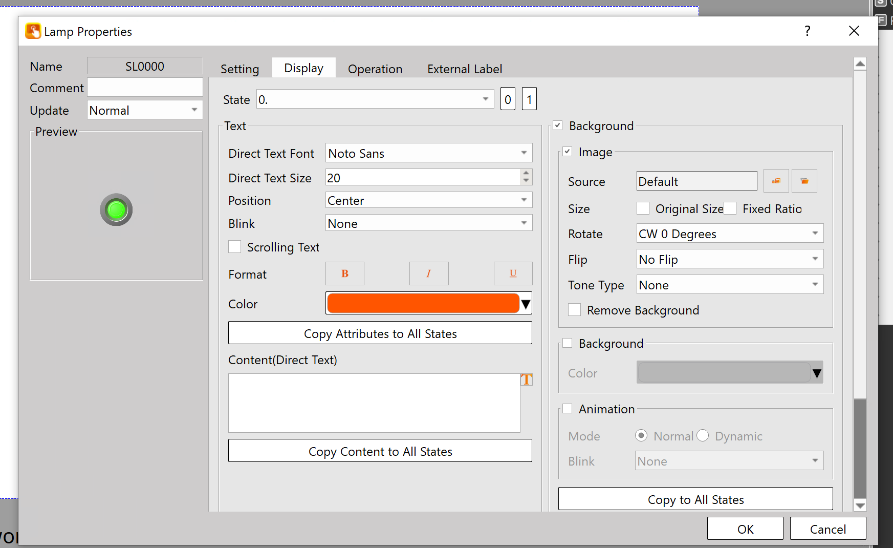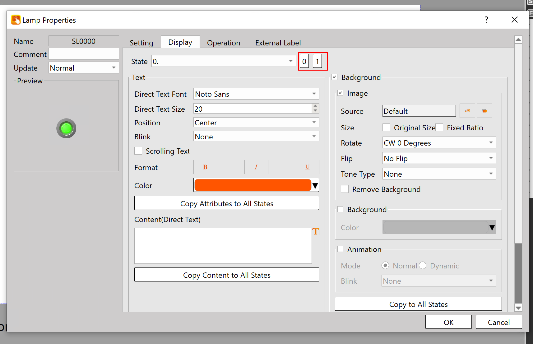 例えば下図ではState1をクリックし、Preview画面でランプがState1のときの外見を確認できます。