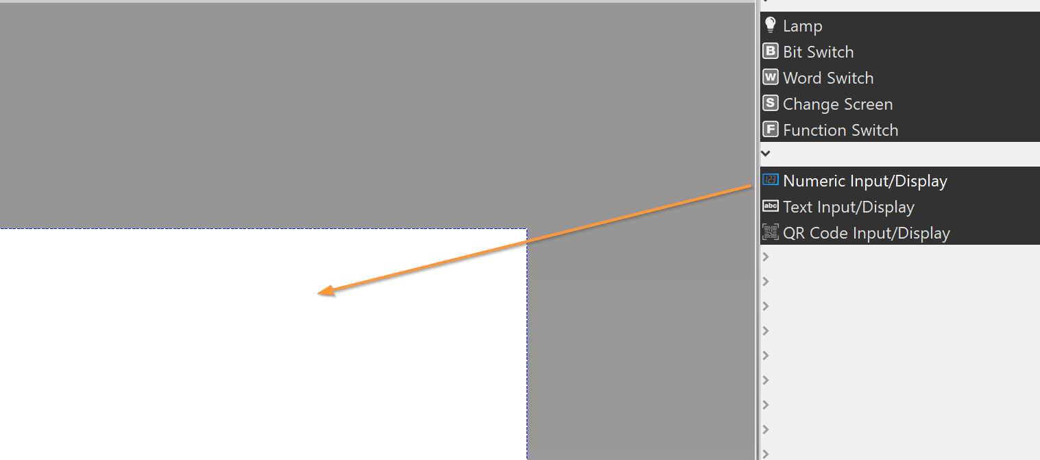 次は三菱電機RJ71EN71とHMI間の通信状態を確認するために、Numeric Input/Displayを追加します。