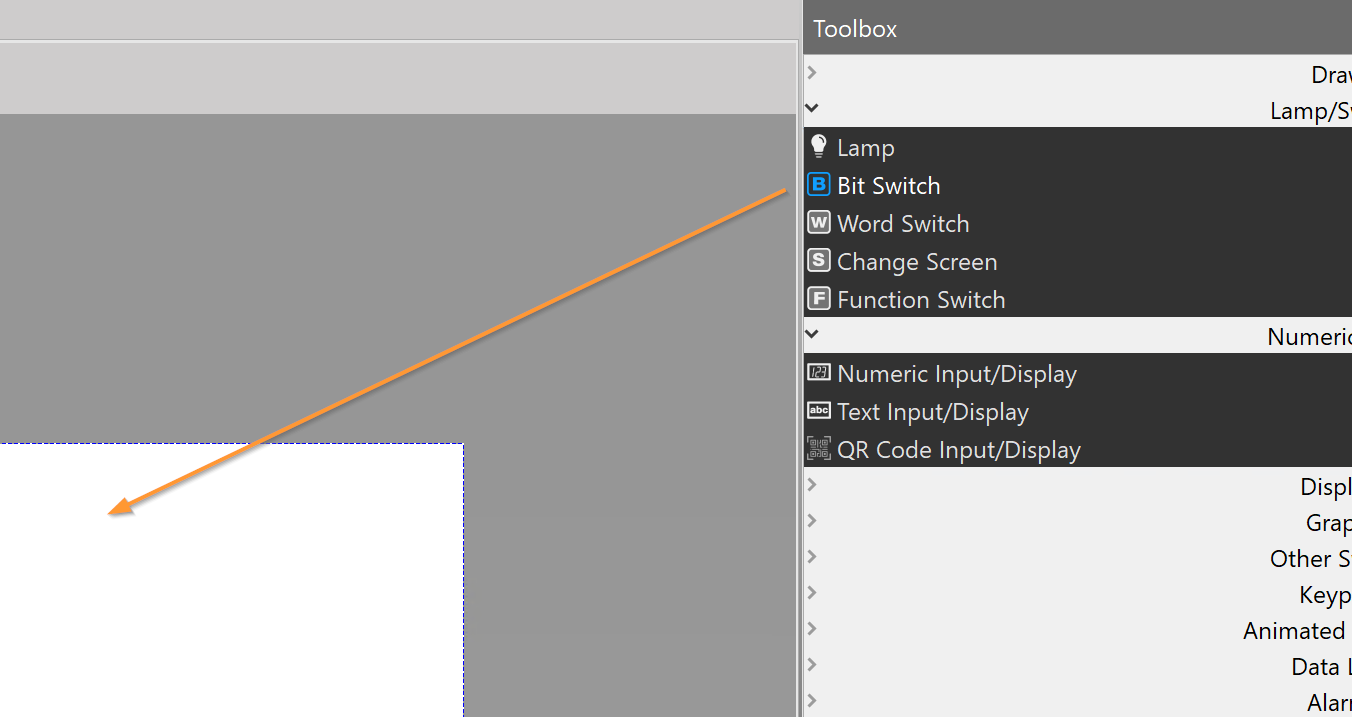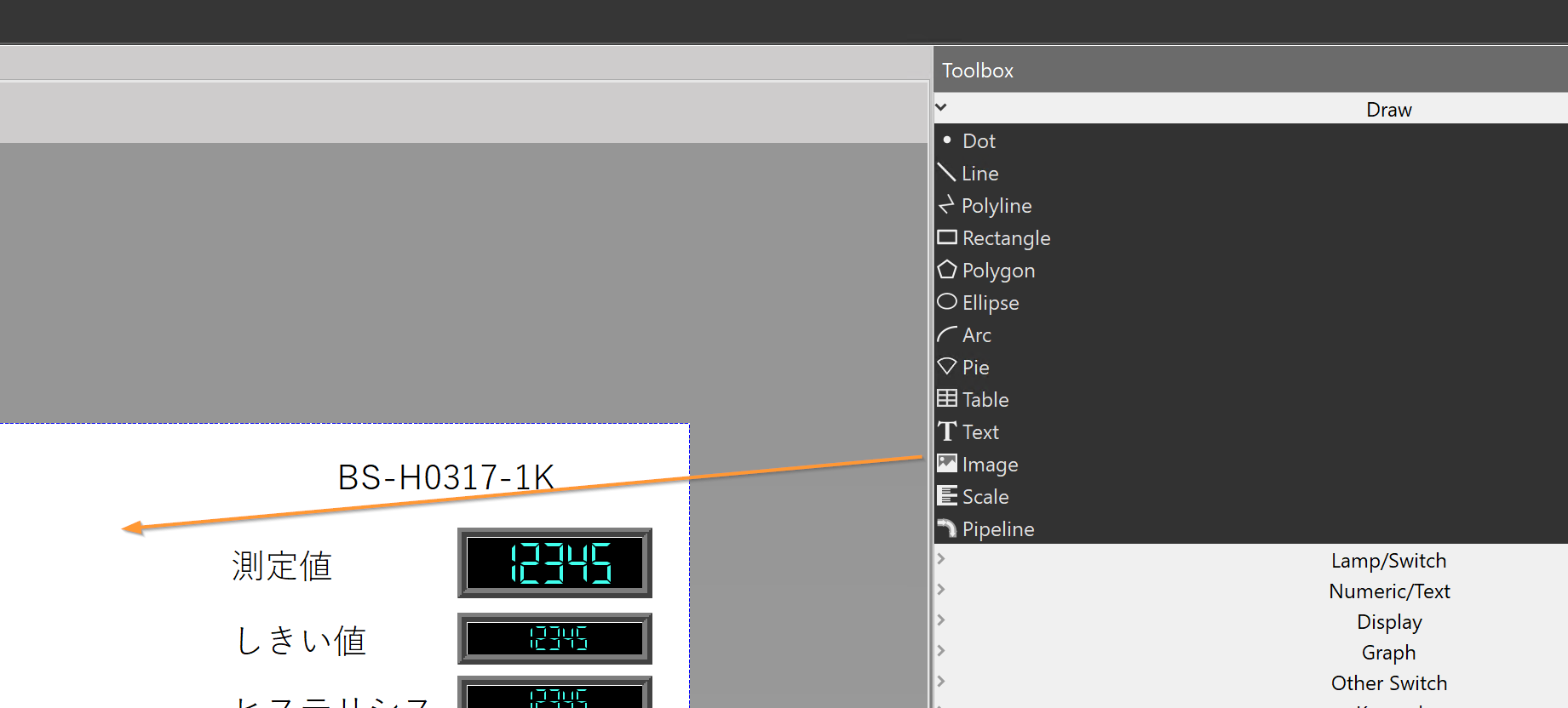 今度はToolbox→Bit Switchで画面にスイッチ部品を追加します。